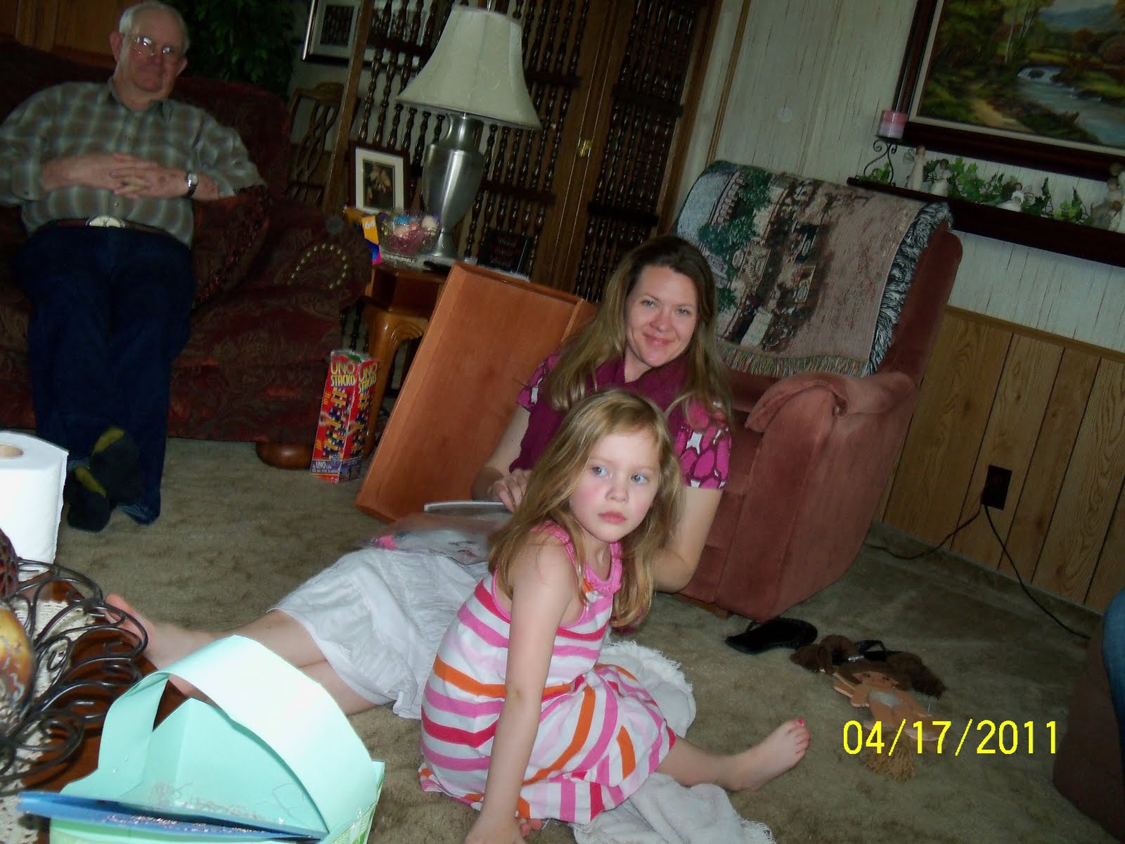 Uncle DelRay came after work and helped us get back to our car at their home. Tired and ready for bed. Heather and I slept in the sewing room bedroom. She hardly moved ----- I think she was very tired. This morning about seven fifteen she tapped me and said it was time to get up. Another special day with lots of things happening. Her mom, dad, and brother Sam arrived for dinner and then we had some family visitors. The Firths, the Brewers, Carli and Kaden, and Uncle Paul would brighten our day. Lots of tears from our little girl when she had to go home. So sad ----- I promised her she could come and stay for a longer time when school was out.